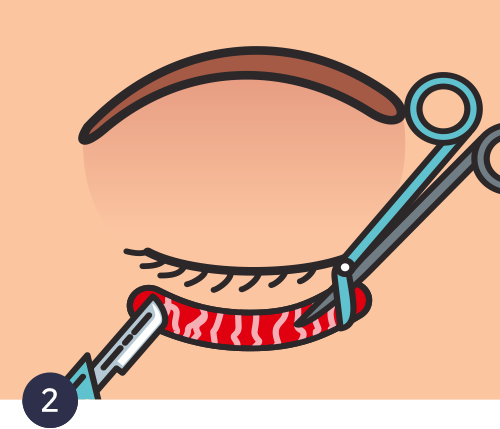 눈꺼풀이 불룩 튀어나와 보이게 만드는 지방을 제거합니다.