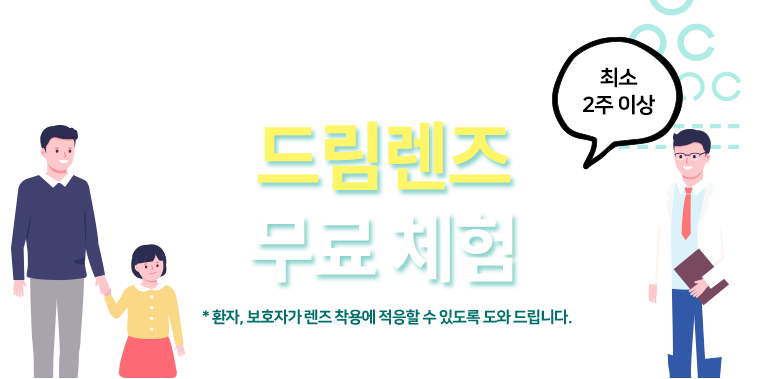 * 서울안과는 드림렌즈 착용을 무조건 권유하지 않습니다. 나이와 교정량, 눈의 상태 등을 면밀하게 검사한 후 착용 가능 여부를 안내해 드립니다.